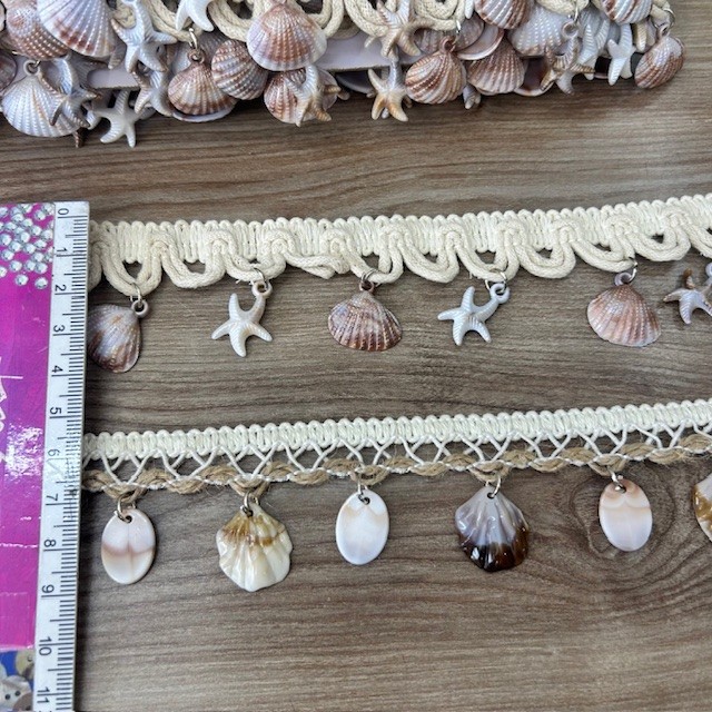 Galão Passamanaria com Pingentes do Mar (Conchas & Estrelas) - 5 ou 13,70 Metros: O toque praiano e sofisticado para suas criações de moda e decoração!